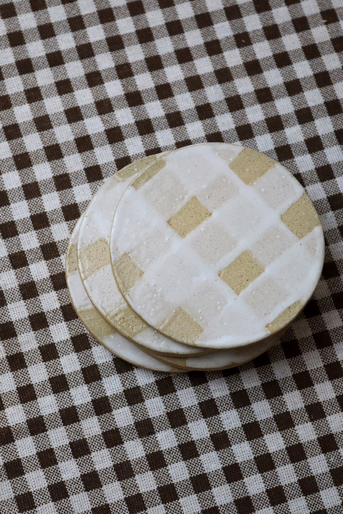 Beautiful handmade ceramic coasters by local ceramist Hannah Inskip